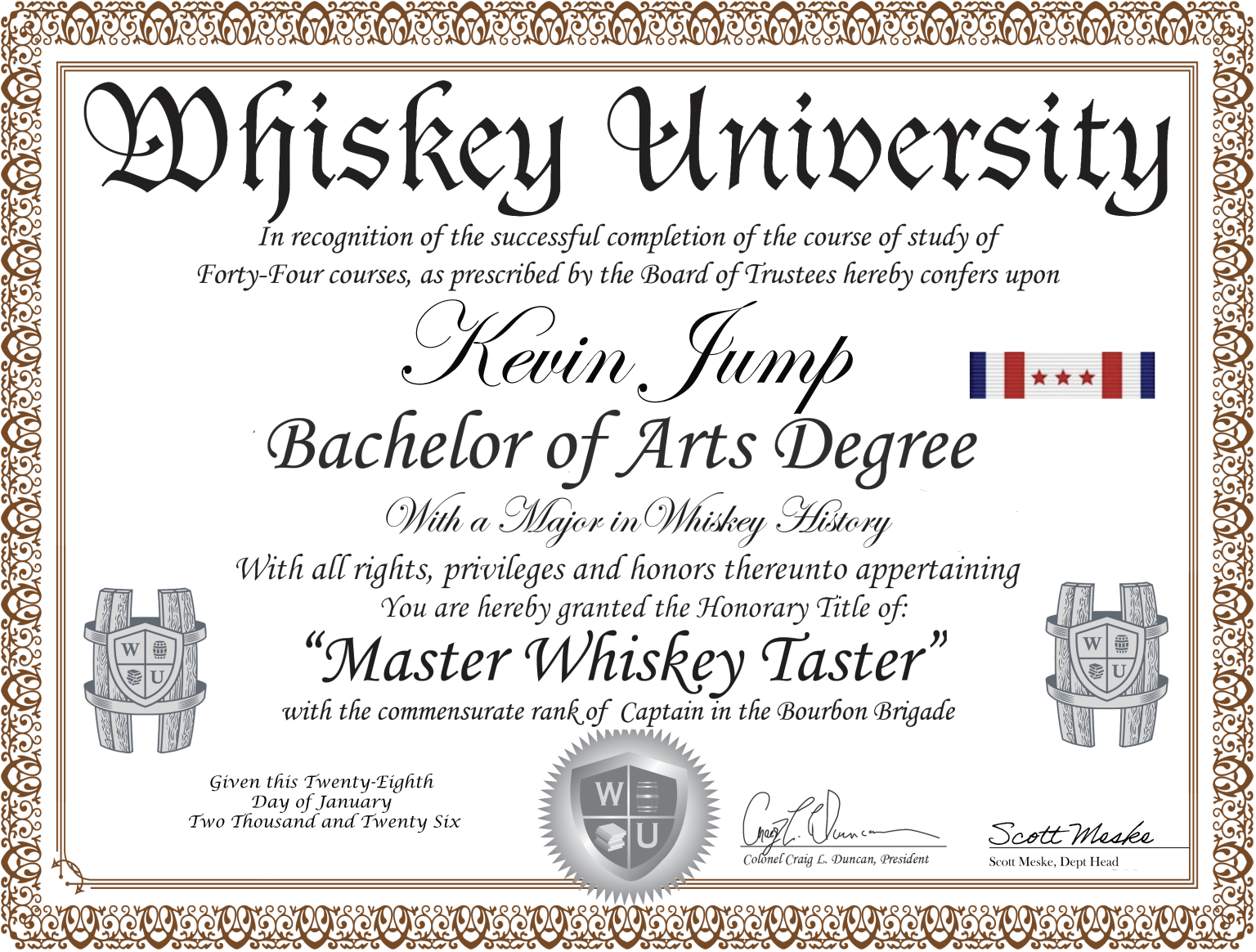 Rebecca Bryant has been a member of Whiskey University since the summer of 2021. In 2016, Whiskey University began offering Certificates, Diplomas and Degrees. Becca earned her Bourbon Diploma on September 14, 2021 after passing eight classes.