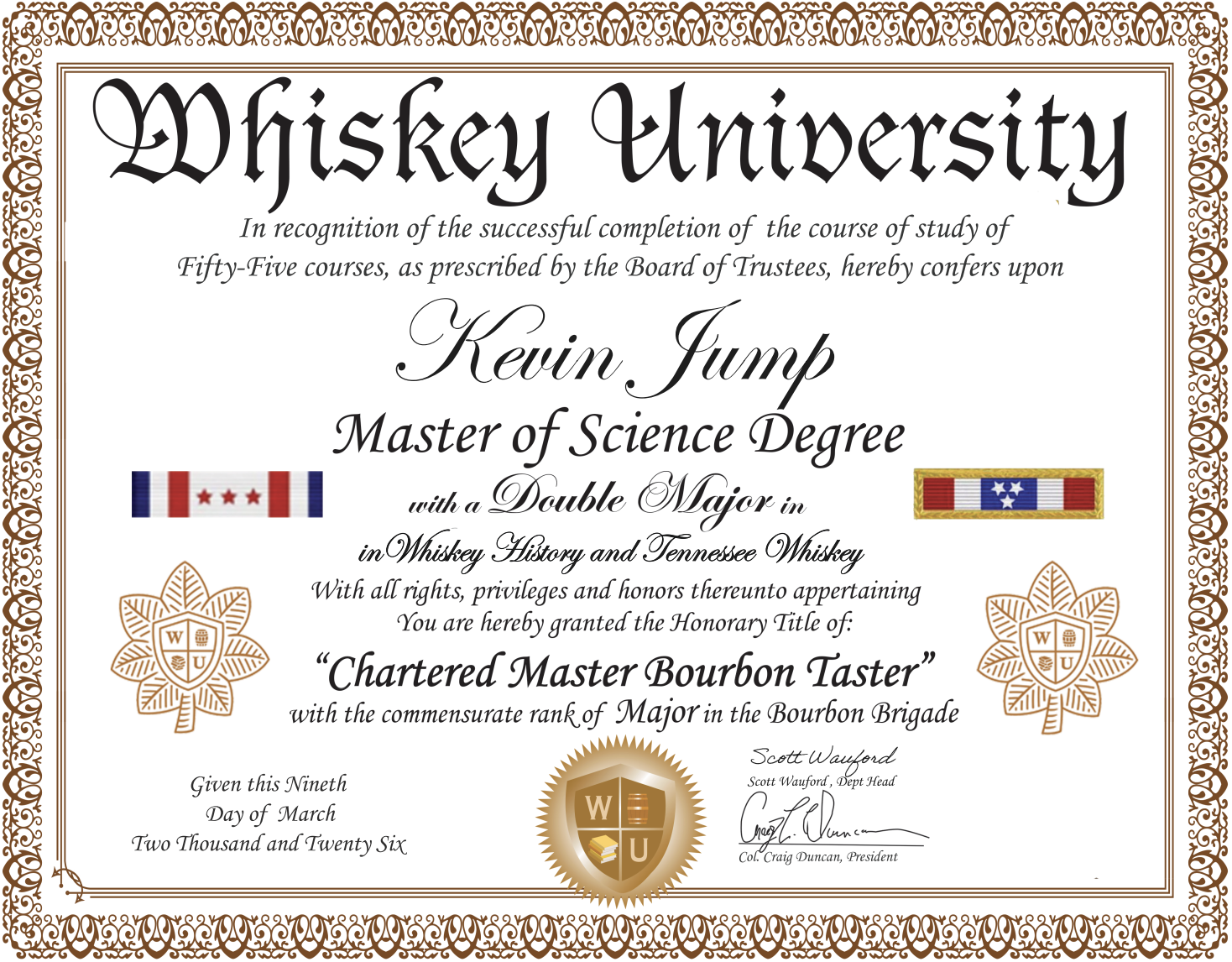 Bryant completed her 29th course, earning his Bachelor’s of Science degree the Title of Master of Bourbon Taster and the rank of First Lieutenant in the Bourbon Brigade on June 18th, 2024.