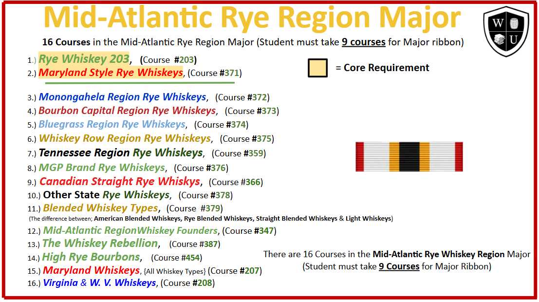 Note: Whiskey University will mail your physical Major Ribbon Rack ONE TIME during your career with W. U. You may have them mailed to you upon earning all NINE Majors. But it will only mailed to you one time at your cost.